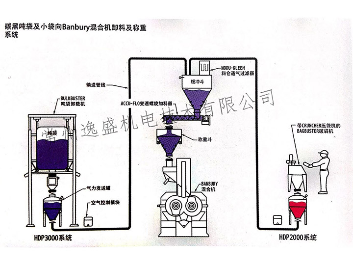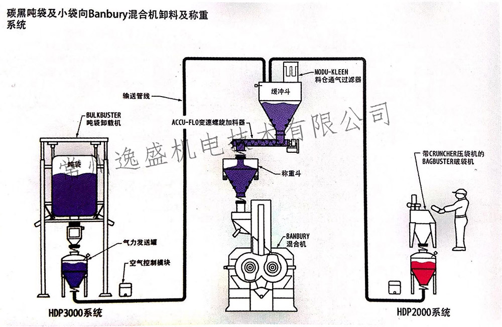 碳黑吨袋及小袋向Banbury混合机卸料及称重系统