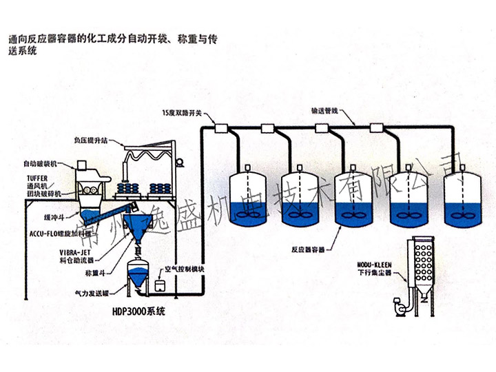 通向反应器容器的化工成分自动开袋、称重与传送系统